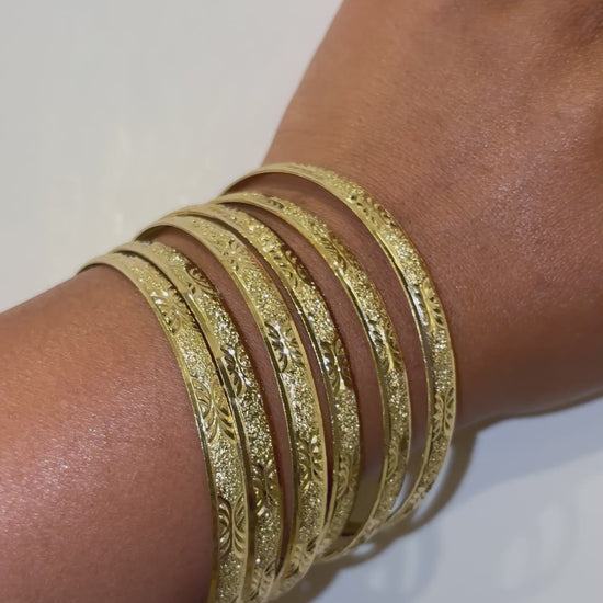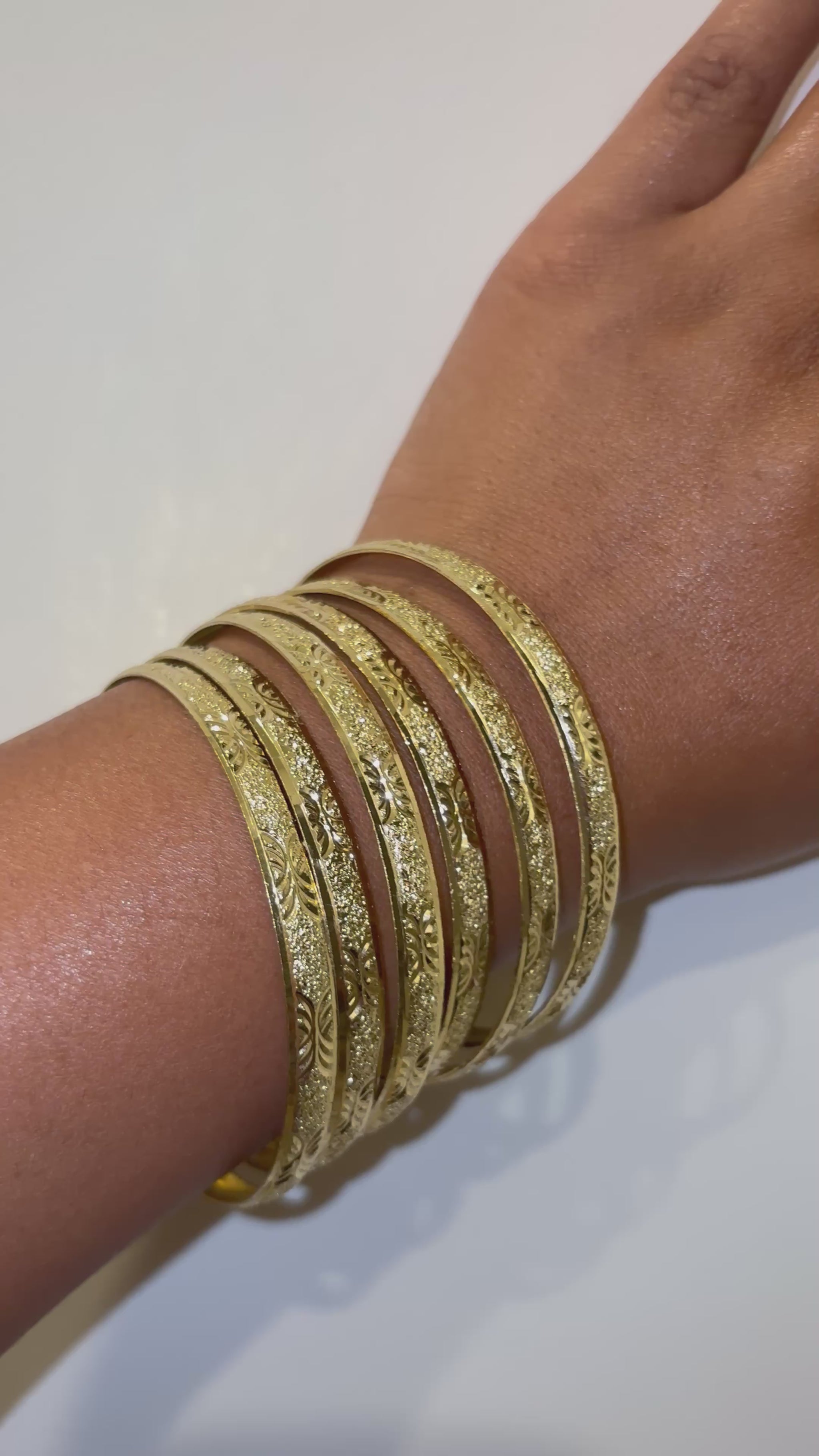 Elevate your everyday style with our Milané Luxe Bangles — made to last through it all. Crafted with a polished gold-tone finish and engraved detailing, these bangles are 100% no tarnish and safe to wear in the shower, gym, or on the go.